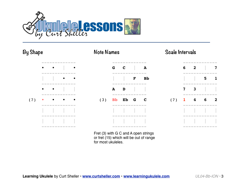 Essential Bb Major scale patterns for ukulele.