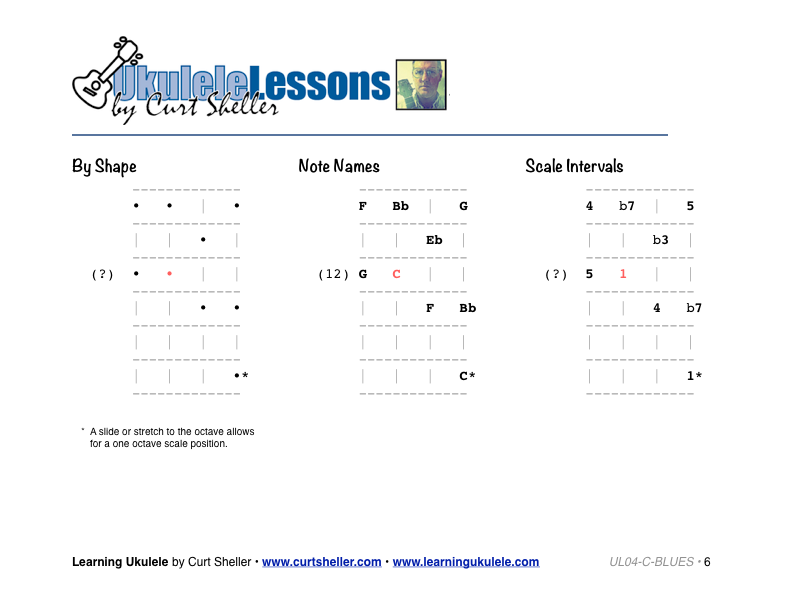 Essential C Blues/Minor Pentatonic scale patterns for ukulele.