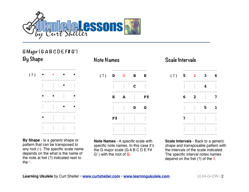 Essential G Major scale patterns for ukulele. Learning scales typically starts with learning a position or pattern by shape. For a lot of players that's where it stops. With the many possible shapes between chords and scales to learn - there has to be a better way - There is!!!