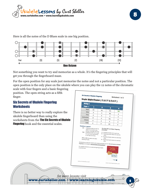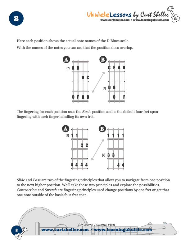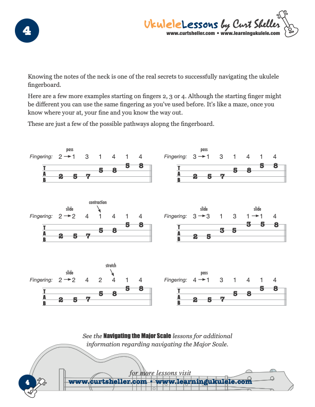 Whether it’s connecting licks, riffs, scale positions, arpeggios, sequences or melodies – navigating the fingerboard and connecting the various positions - it’s all about using sound fingering principles. I’ve adapted Chuck Anderson’s, The Six Secrets of Guitar Fingering to the ukulele in my book The Six Secrets of Ukulele Fingering. It’s from these six fingering principles that connecting positions and navigating the multitude of possible pathways on the ukulele can become second nature.