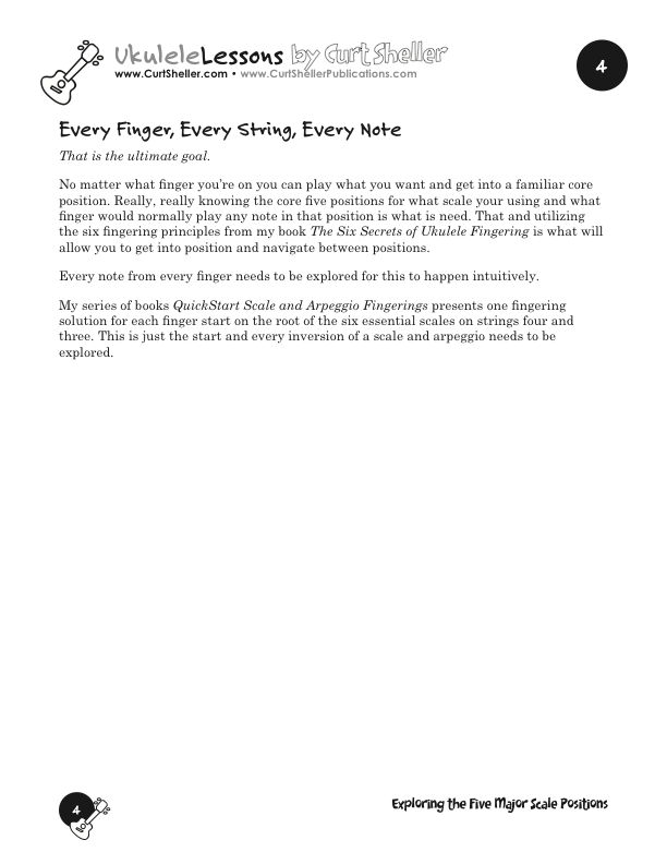 These positions are ONLY a starting point and frankly on the position that only cover four frets have any real functionally. All the work we do will be connecting these positions using the fingering principles from my books The Six Secrets of Ukulele Fingering.