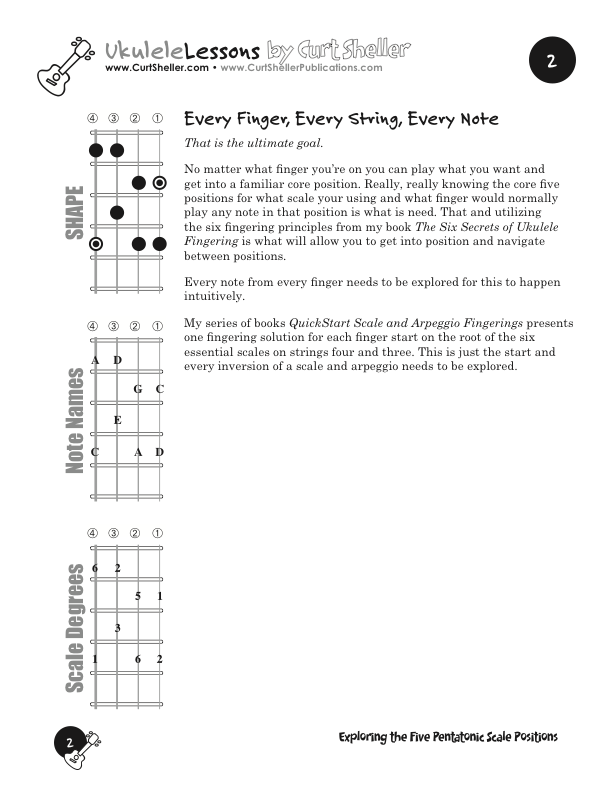 The next step is to connect these five positions with various pathways. This is best accomplished using the principles from the book, Six Secrets of Ukulele Fingering .