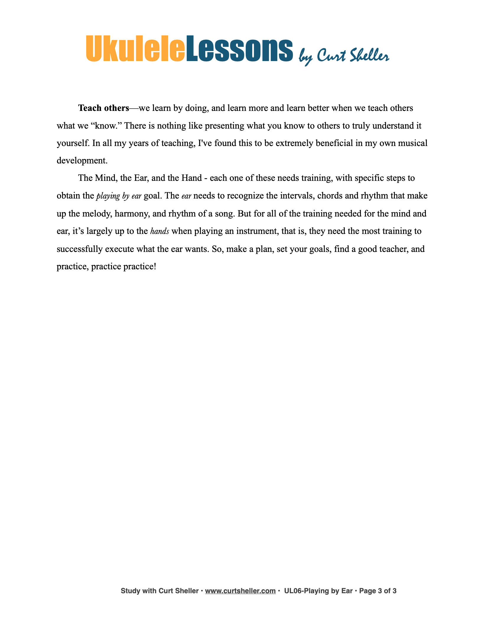The Mind, the Ear, and the Hand – each one of these needs training, with specific steps to obtain the Playing by ear