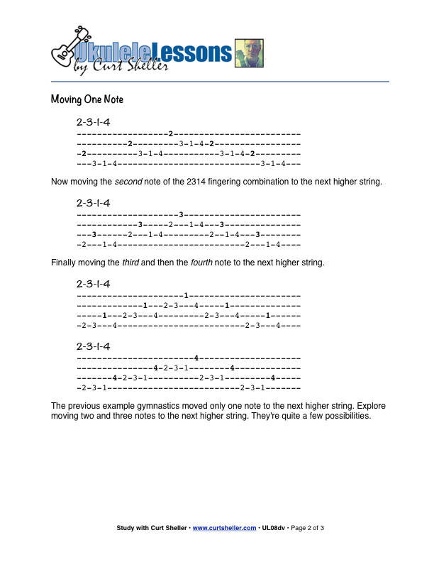 This lesson takes the original four finger-four notes single string gymnastics and creates adjacent string variations.