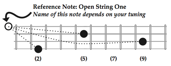 - Compare string ② to string ①, a perfect fourth