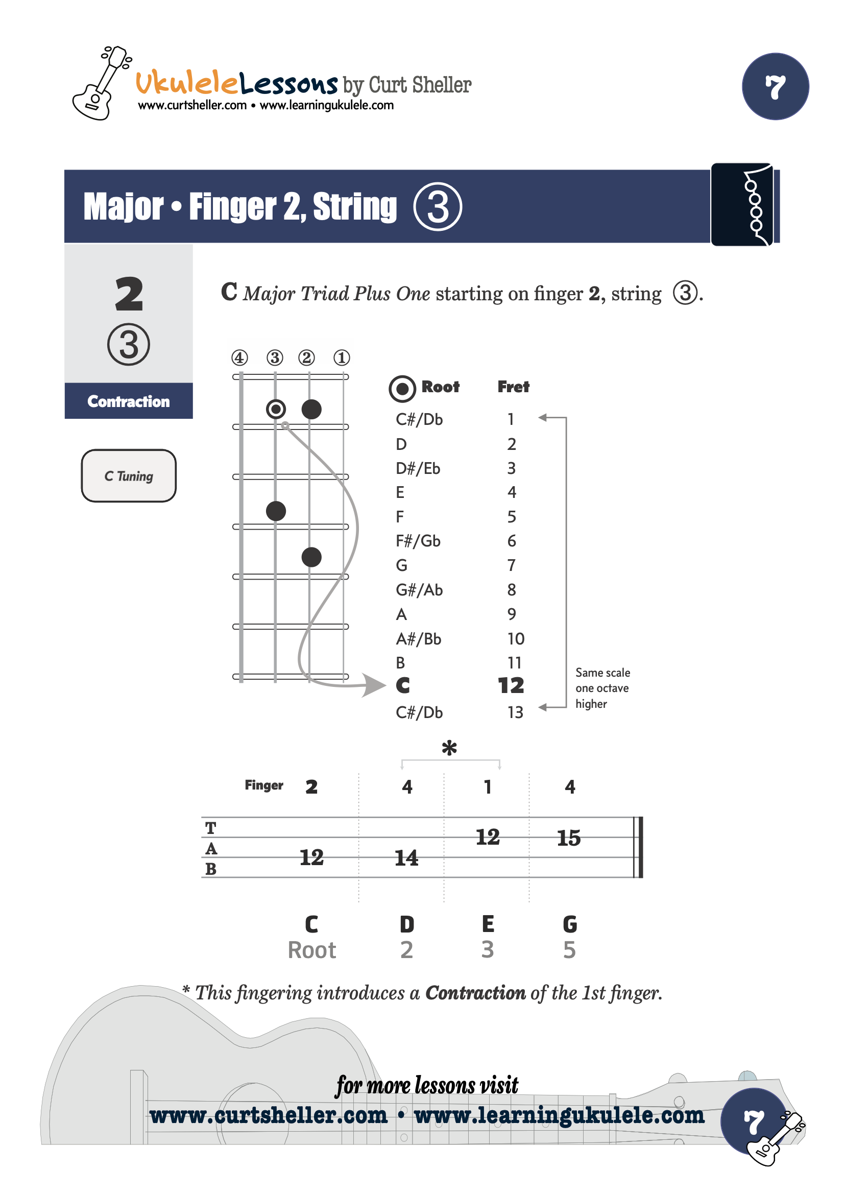 Exploring the triads plus one series is best done using the QuickStart series format and the fingering principles from my book The Six Secrets of Ukulele Fingering.