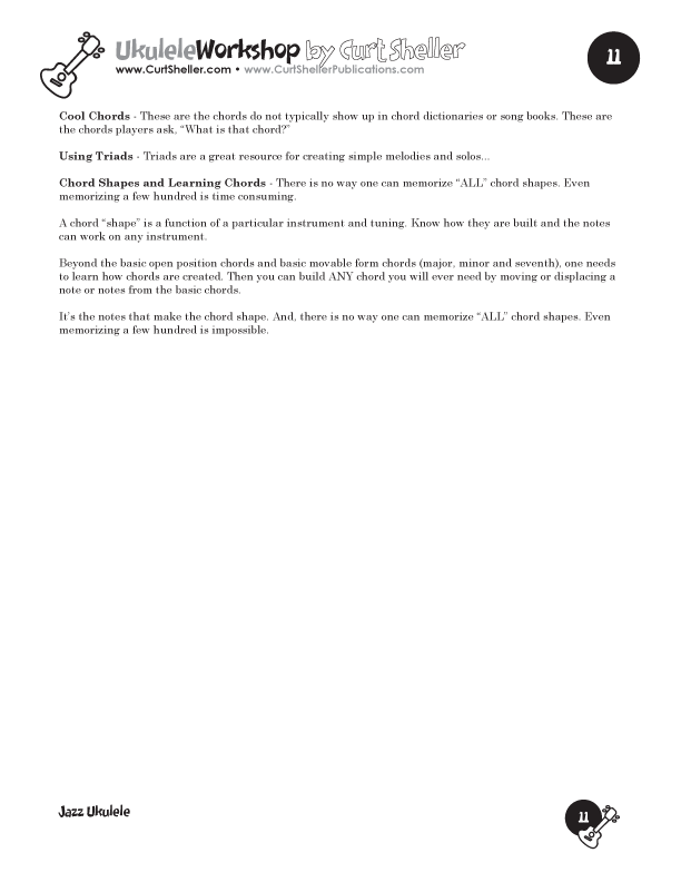 Beyond learning basic Ukulele chords, most players struggle with advanced chords. Commonly called "jazz" chords, these more sophisticated voicings find a wide use in all forms of music. A Guide to Advanced Chords for Ukulele - presents a highly organized and efficient approach to the mysterious subject of advanced chords. Chord dictionaries are not the answer.