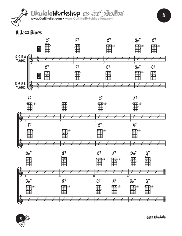 The Blues are at the heart of all American music. It has influenced Country, Rock, Folk, Jazz, Bluegrass and just about every form of American music we listen to today. 26 blues progressions in C and G tuning, progressing from basic to advanced jazz progressions, with chord grids and substitutions explained.