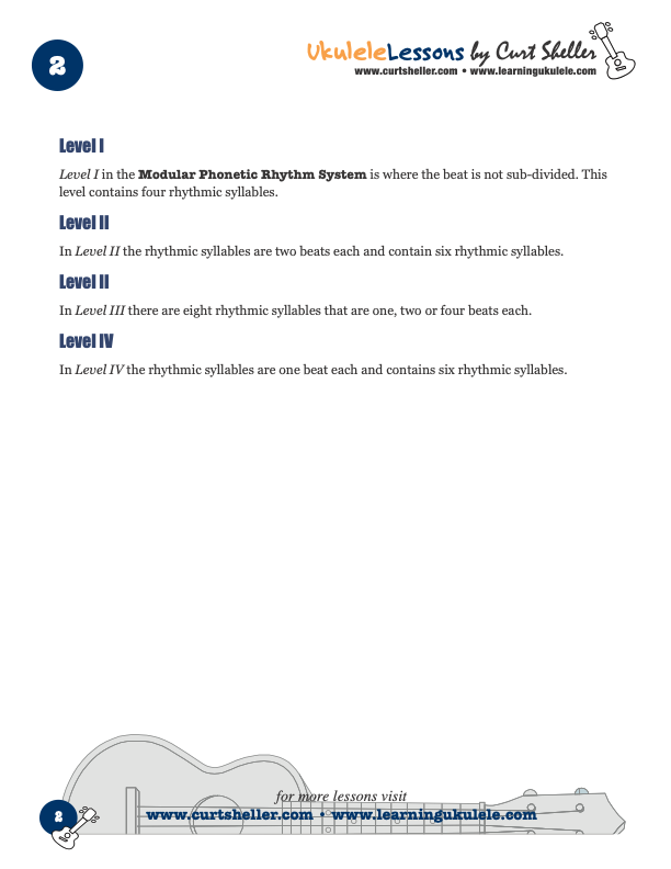 The Modular Phonetic Rhythm system is organized into four levels depending on the how the beat is sub-divided.