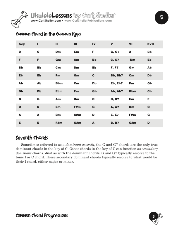 Before individual chords become the background of songs, they must be put into orders called chord progressions. The Advanced Guide to Chord Progressions for Ukulele organizes progressions according to string family, position, voice leading and chord magnetism.