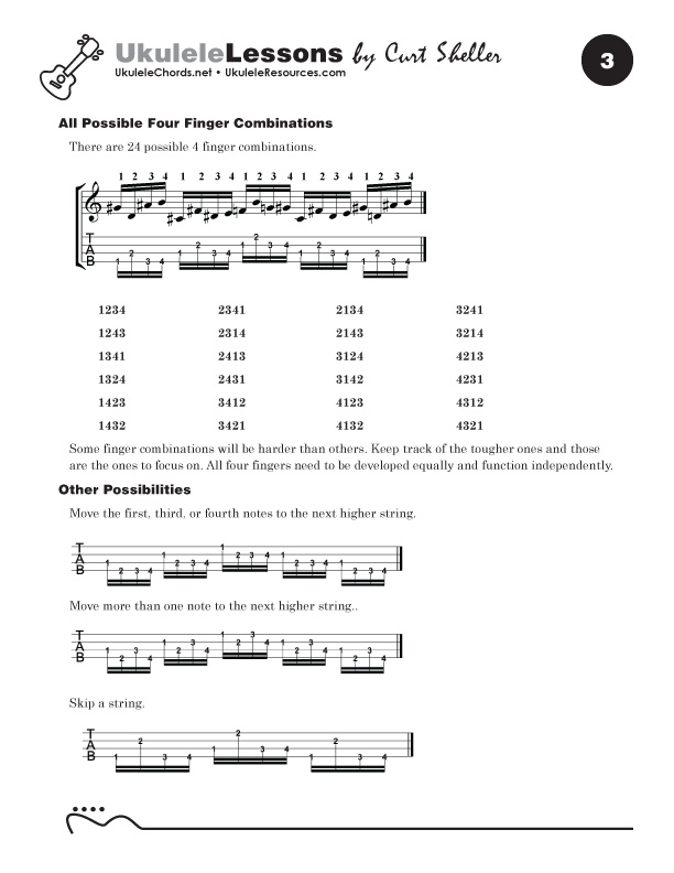Basic one, two, three and four note single string drills for ukulele for developing finger strength and independence. It's critical a player develop the finger strength and independence to explore their full musical potential. By developing a great fingerboard hand, you will be able to explore more challenging musical situations.