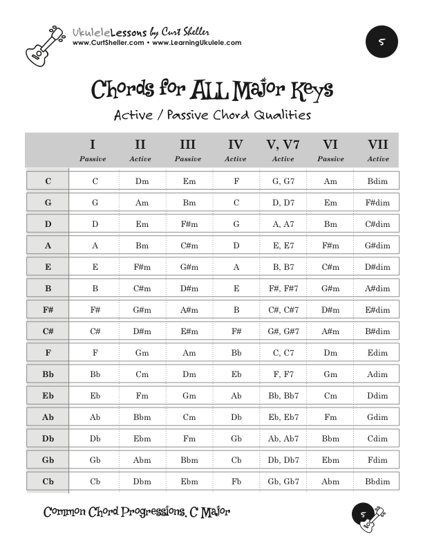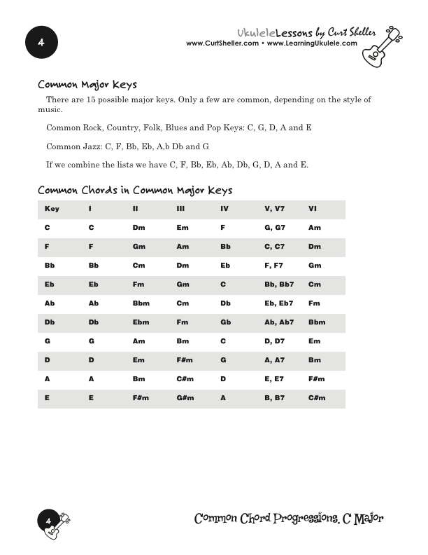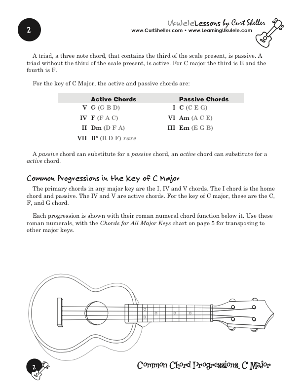 Before individual chords become the background of songs, they must be put into orders called chord progressions. The Advanced Guide to Chord Progressions for Ukulele organizes progressions according to string family, position, voice leading and chord magnetism.