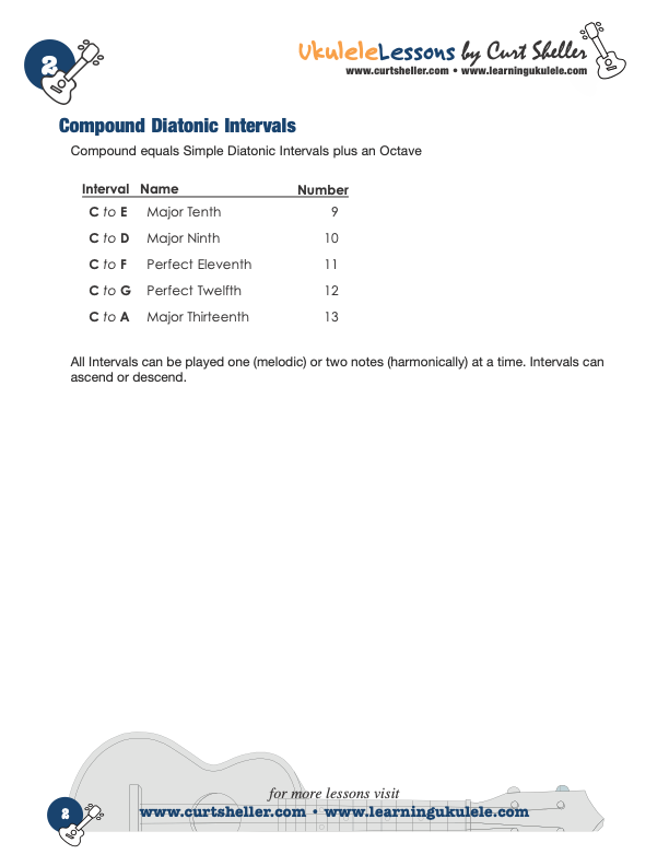 Here is how the Simple Diatonic intervals layout on with the open position C Major scale on ukulele.