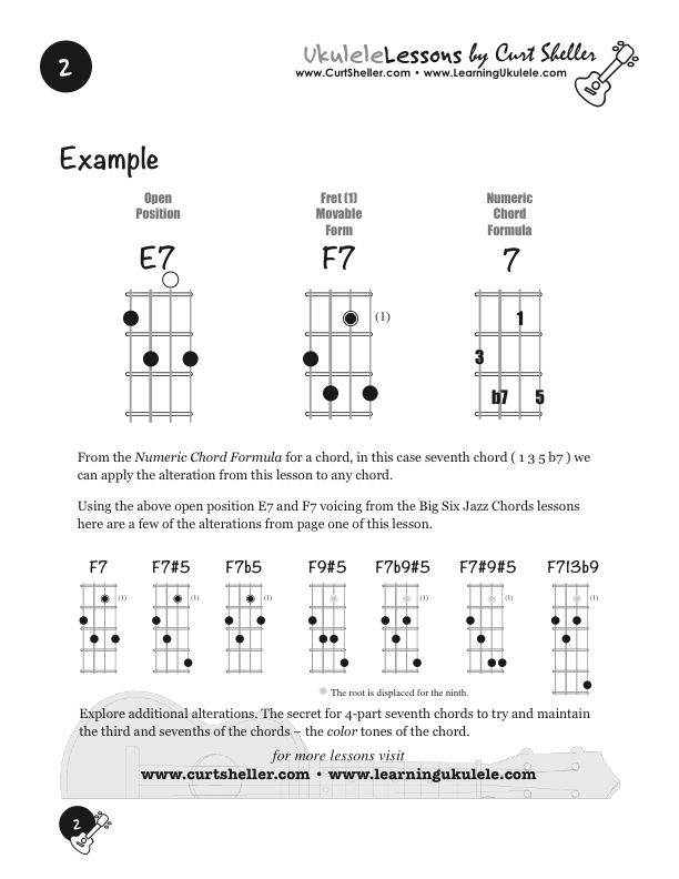 Core Chords for Ukulele, The Big Six - From four F7 chord voicings or shapes, your can build your massive 4-part, a.k.a., “jazz” chord vocabulary. Beyond basic open position chords, basic movable form chords and a core set of 4-part chords. There are just too many chords shapes too memorize.