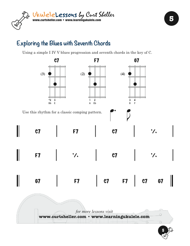 The Blues are at the heart of all American music. It has influenced Country, Rock, Folk, Jazz, Bluegrass and just about every form of American music we listen to today. 26 blues progressions in C and G tuning, progressing from basic to advanced jazz progressions, with chord grids and substitutions explained.