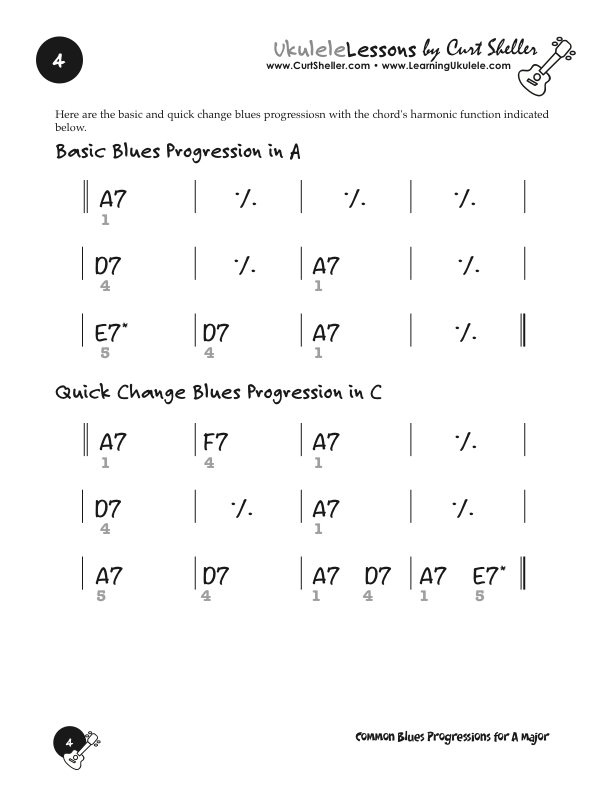 Basic and Quick Change blues chord progressions in the key of A major using the core 7th chords from the Big Six series of lessons. This is great way to explore this core chord in various keys.