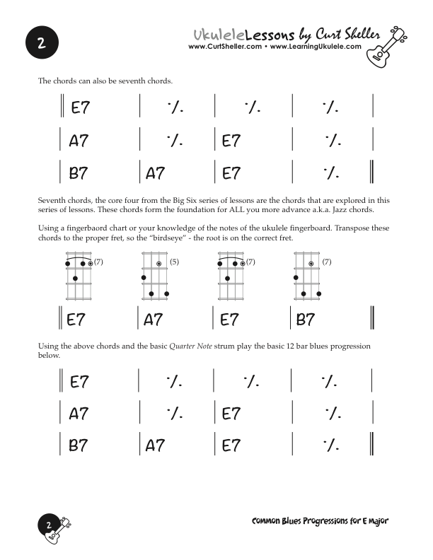 Basic and Quick Change blues chord progressions in the key of E major using the core 7th chords from the Big Six series of lessons. This is great way to explore this core chord in various keys.