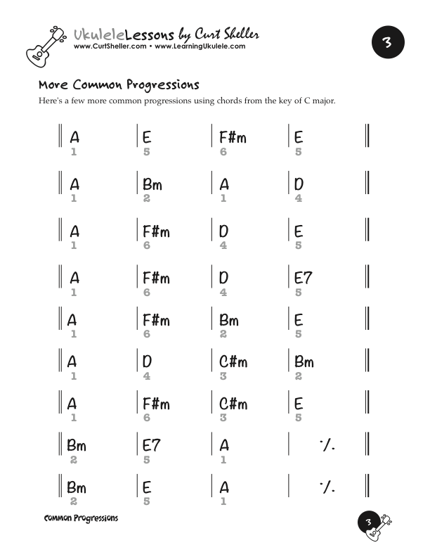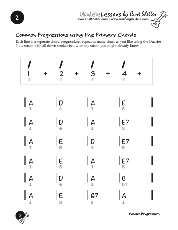 Common chord progressions for the key of A. Using the primary and seconday chords for the key explore these common chord progressions for the key of A.