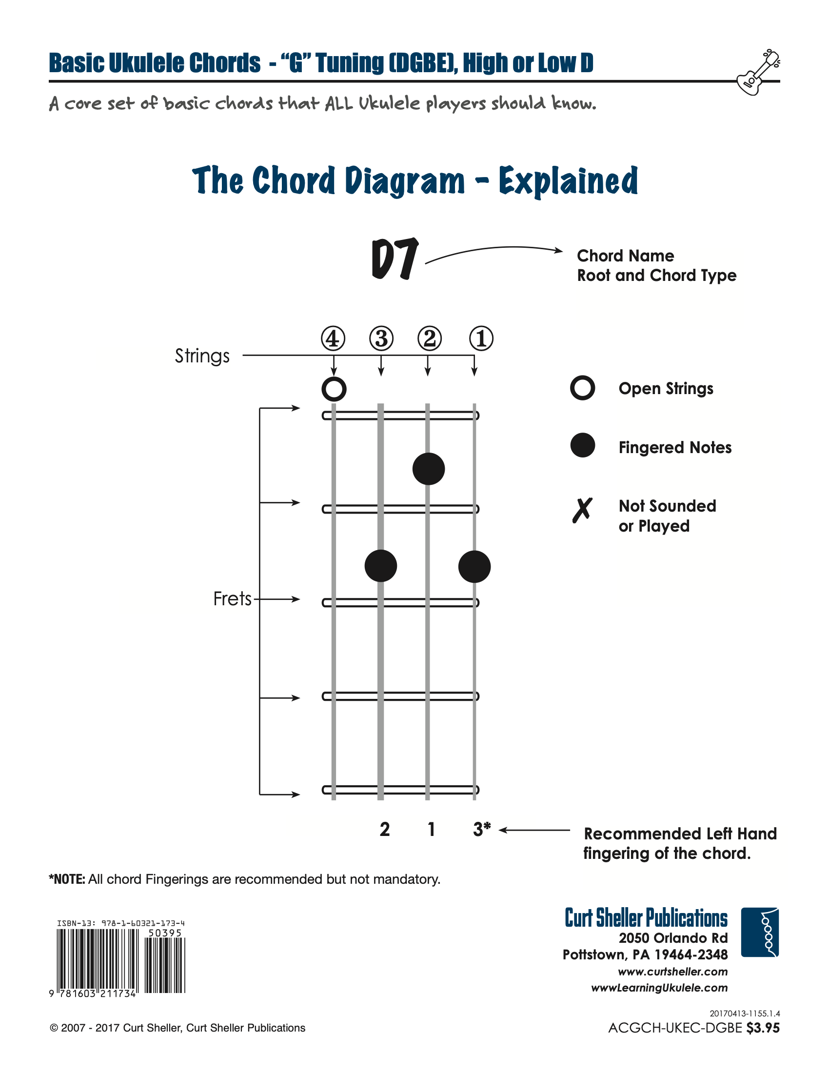 Ukulele Fingerboard Chart for C Tuning, Low or High G – G C E A