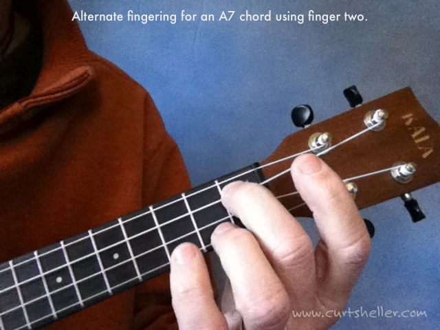 Here are a few alternate fingerings for today’s A7 chord depending on the context the chord is being used.