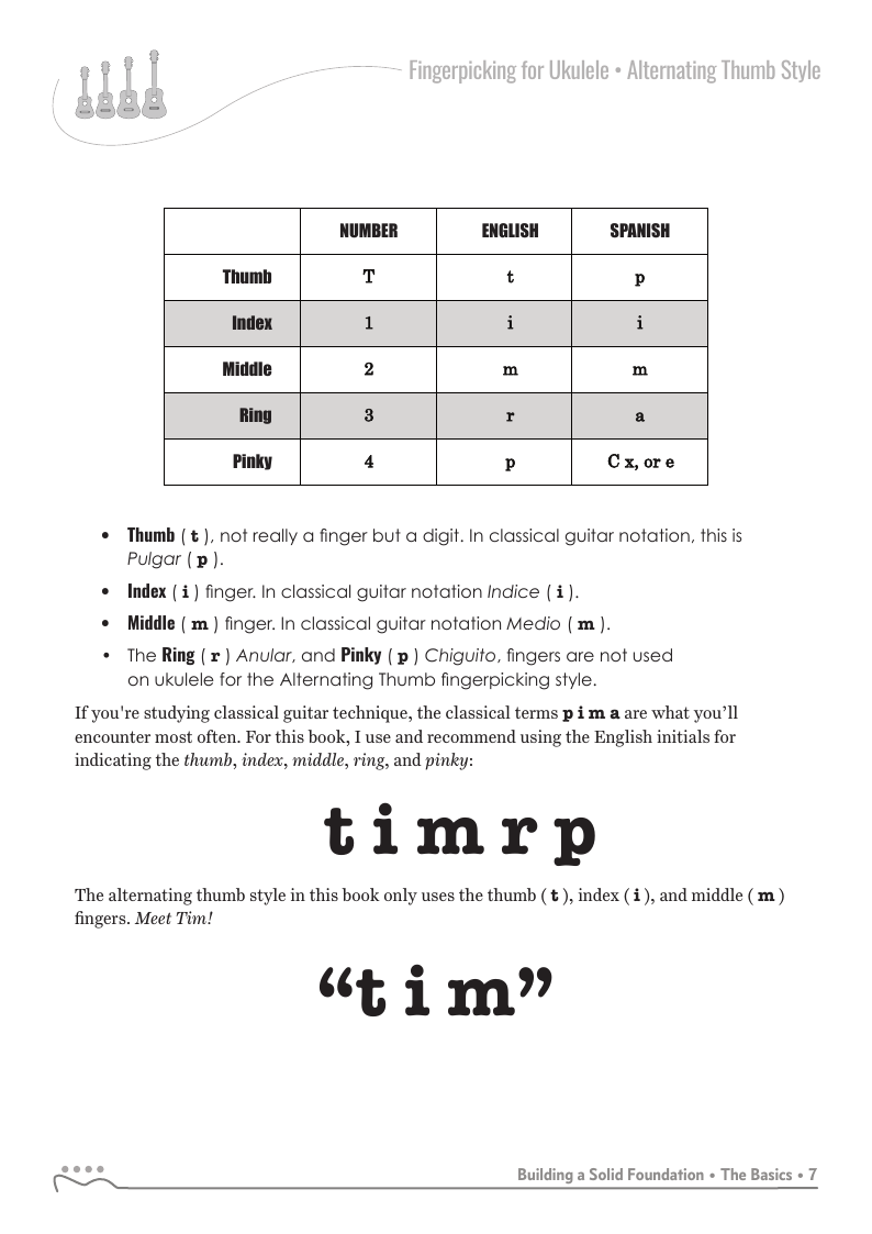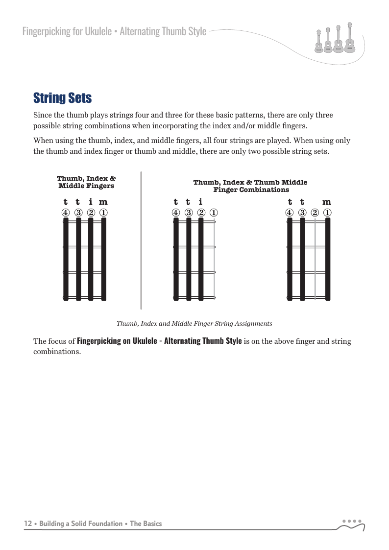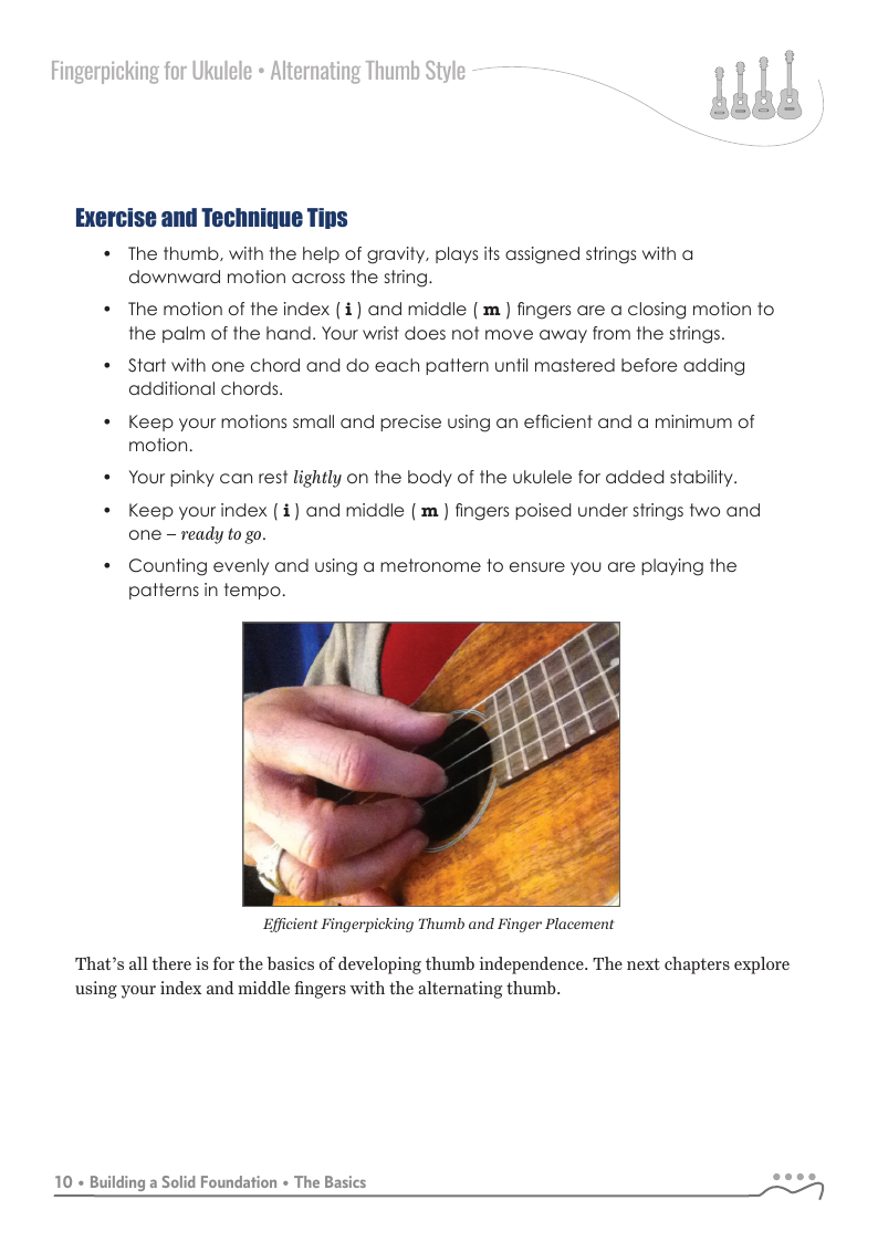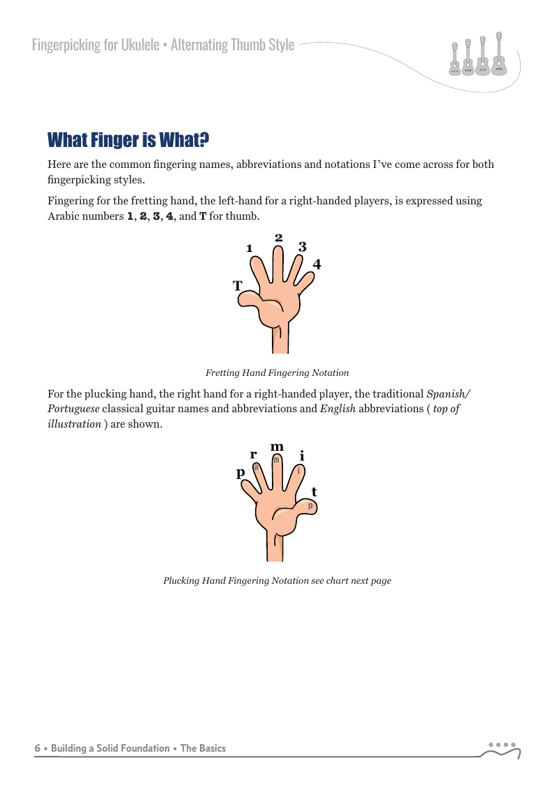 Fingerpicking for Ukulele - Alternating Thumb Style, 2nd Edition is an new expanded edition which focuses on the alternating thumb fingerpicking style through a series of graduated lessons-chapters incorporating your index and middle fingers with the alternating thumb.