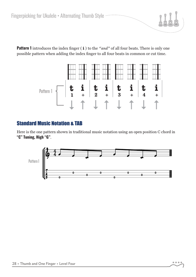 Fingerpicking for Ukulele - Alternating Thumb Style, 2nd Edition is an new expanded edition which focuses on the alternating thumb fingerpicking style through a series of graduated lessons-chapters incorporating your index and middle fingers with the alternating thumb.