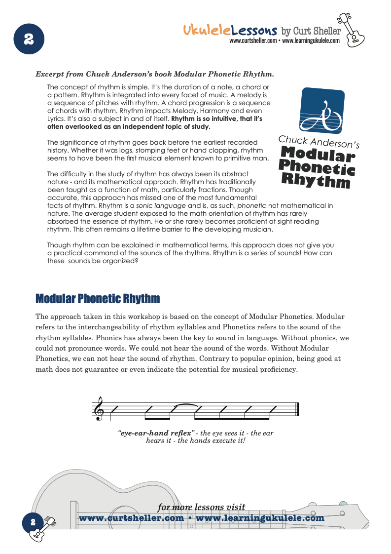 Strums are Inseparably Linked to Rhythm. Any strum can be broken down to its Modular Phonetic rhythmic syllables. Modular Phonetic Rhythm, by Chuck Anderson is a system for learning rhythm. It teaches rhythm phonetically - just as language does. Remember 'Strums ARE rhythm'