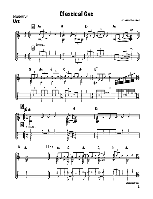 Classical Gas is an instrumental piece of music written by Mason Williams. The title of the album on which it appears is also Classical Gas. This song was originally released by Mason Williams on "The Mason Williams Phonograph Record" released in 1968.