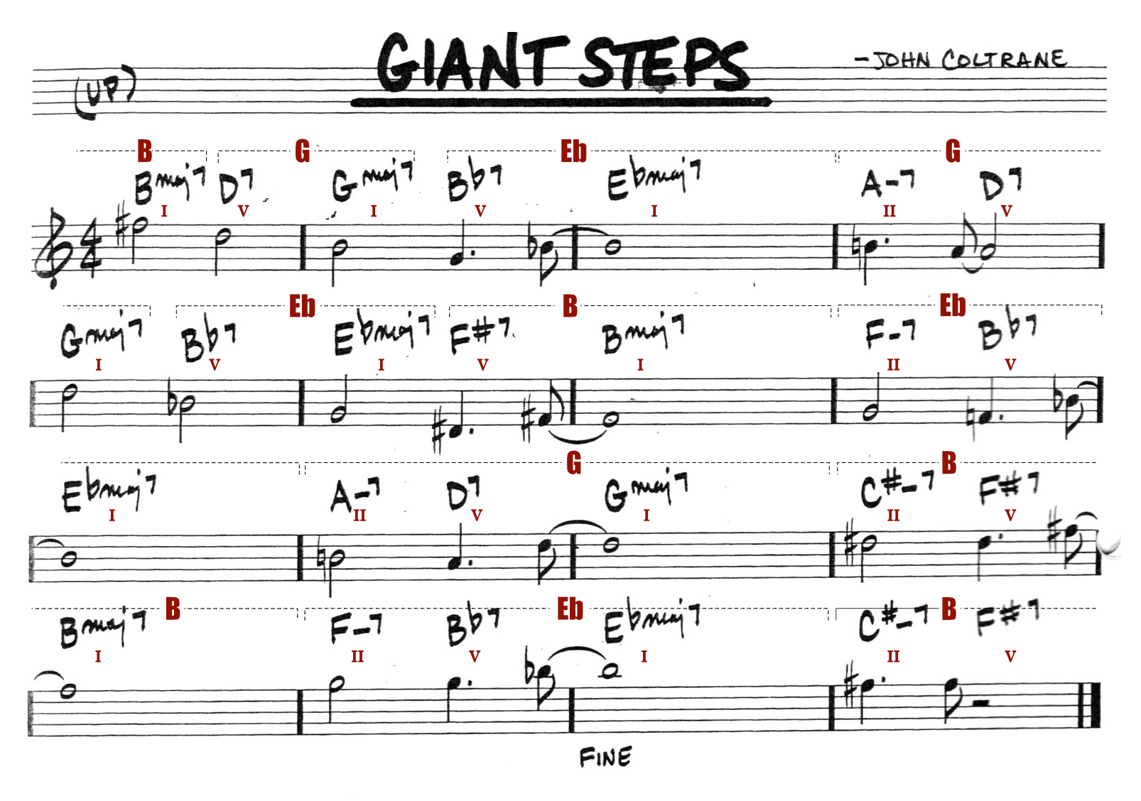 A short version of the John Coltrane classic on a low G, C tuned ukulele. Giant Steps is a jazz composition by American saxophonist John Coltrane. It was first recorded in 1959 and first appeared on the 1960 album entitled Giant Steps. The composition features a cyclic chord pattern that has come to be known as Coltrane changes.