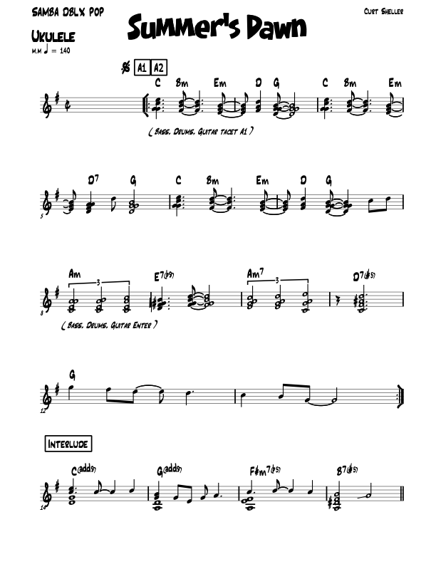 Ukulele leadsheet for this orginal composition from The Curt Sheller Jazz Trio, How About More Uke CD.