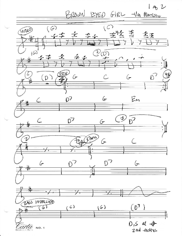 After finding out what chords are required for the song: The Chord Progression ( download the chord lead sheet for Brown Eyed Girl ).