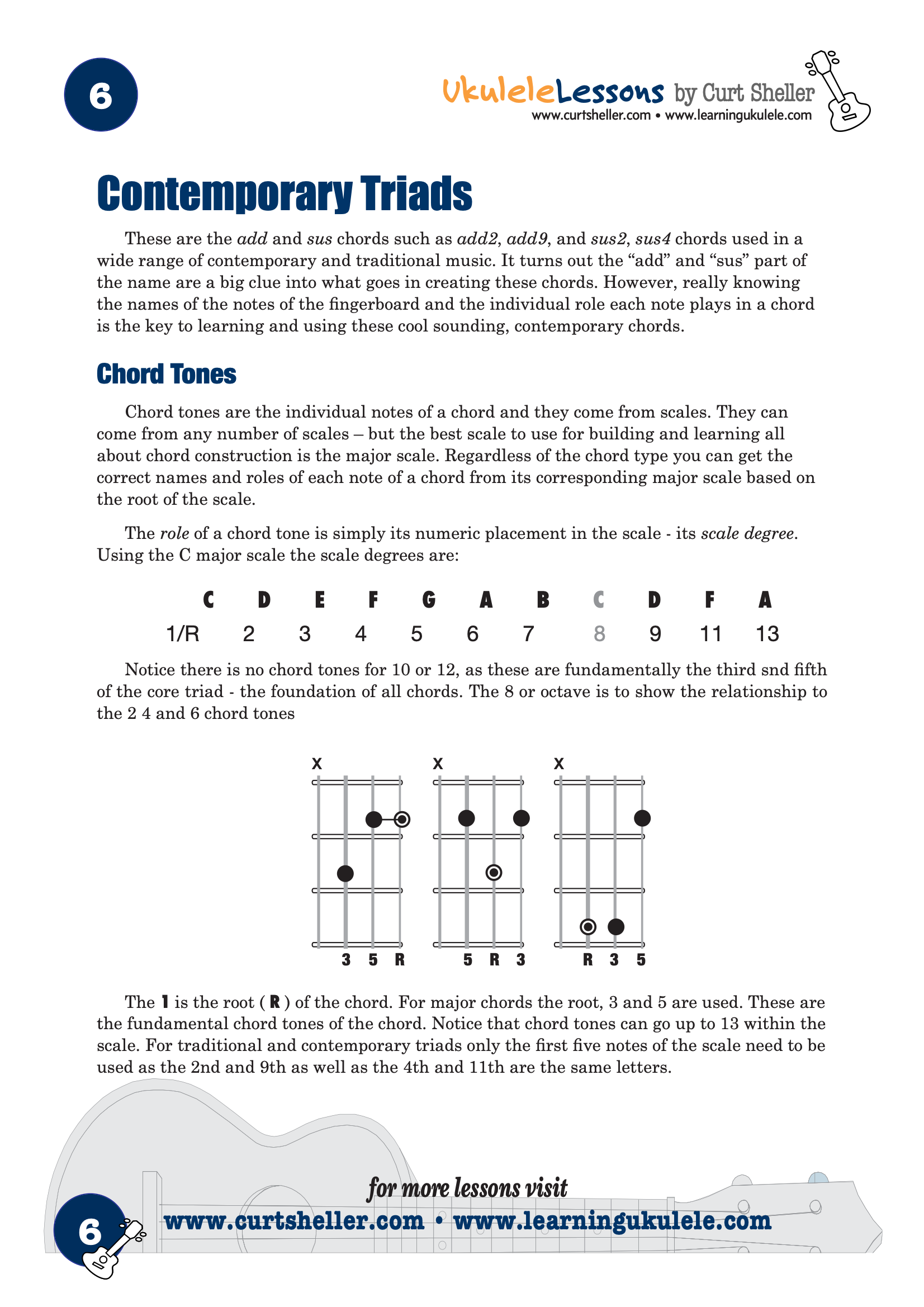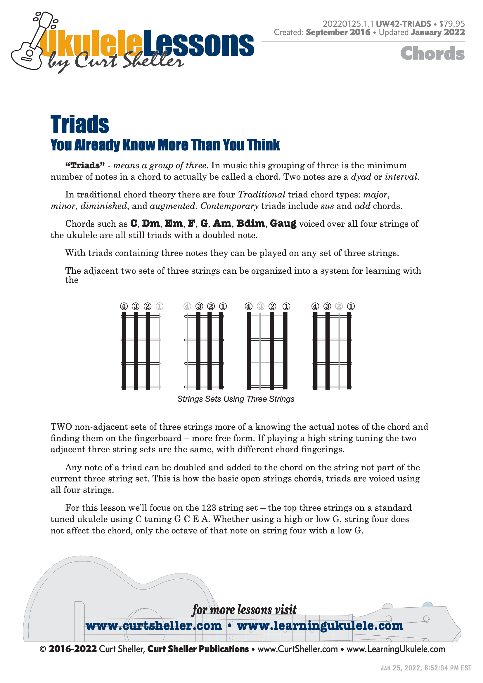We'll explore the traditional major, minor, diminished, and augmented triads and contemporary triads, starting with the triads you already know but don't know you already know. Finally learning the contemporary triads, just what a sus2, sus4, add2, add9 chord is. And, how to use them.