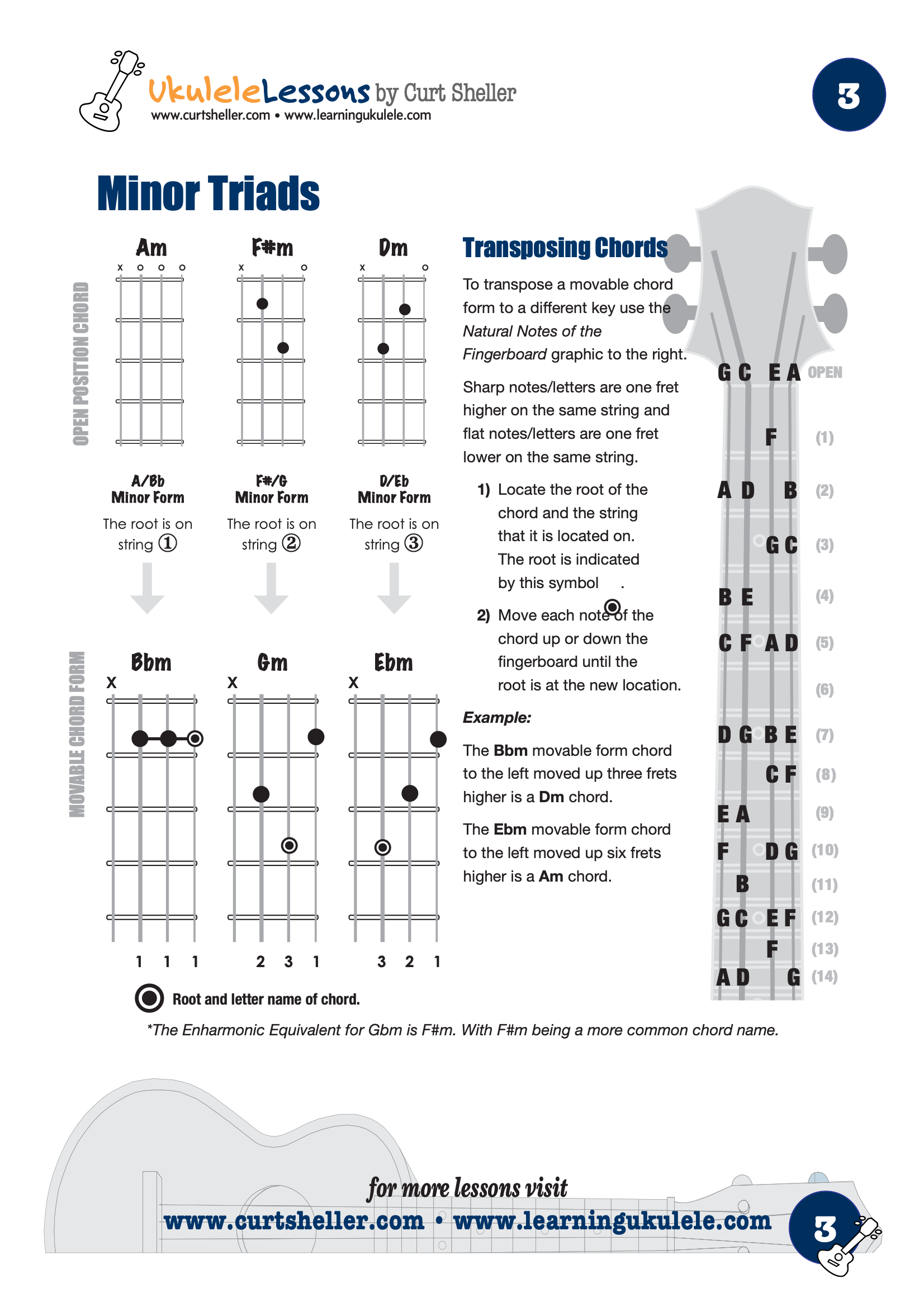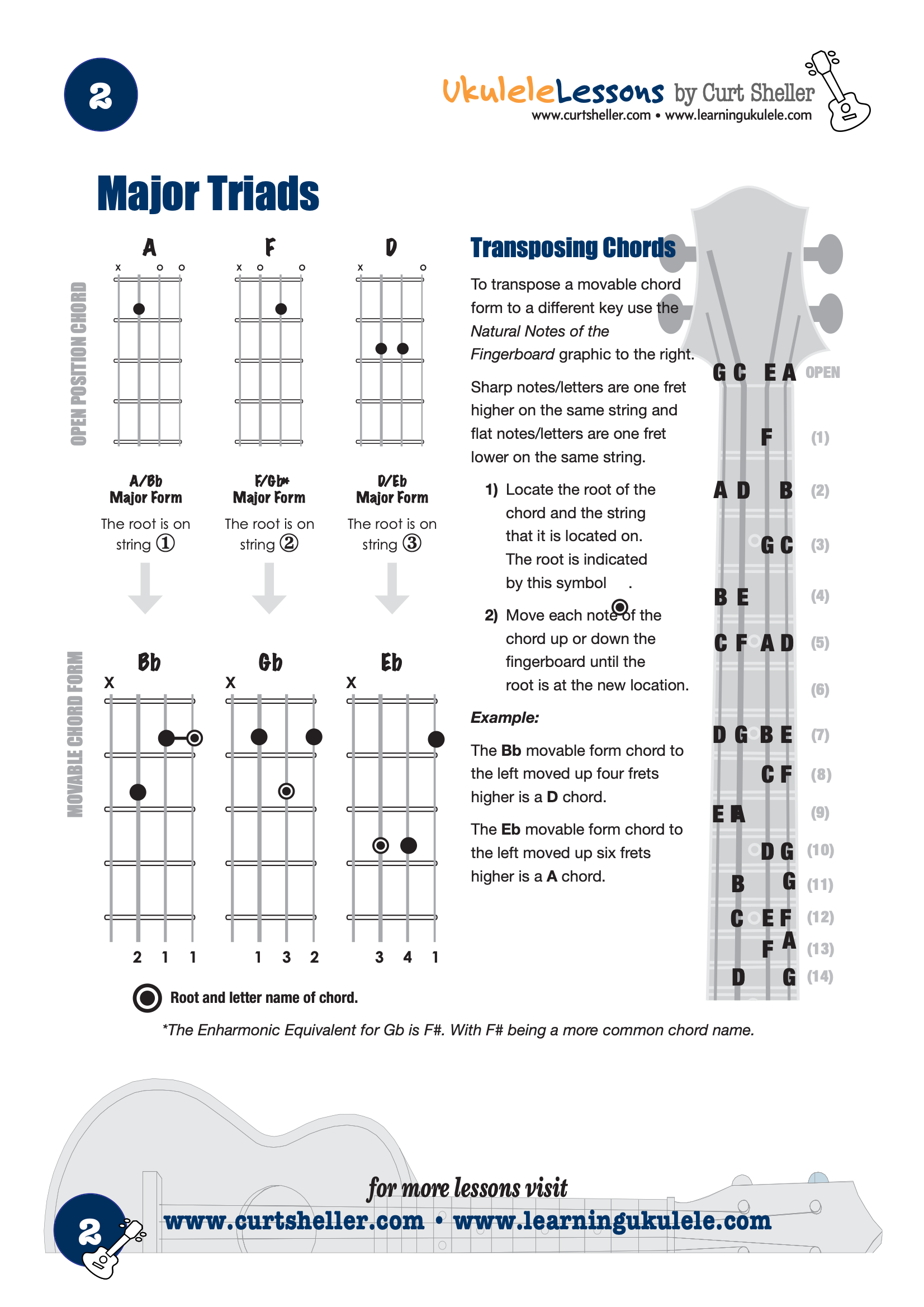 Ukulele Fingerboard Chart for G Tuning, Low or High A – D G B E