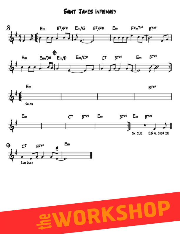 St. James Infirmary Blues is an American blues song of uncertain origin. Louis Armstrong made the song famous in his 1928 recording on which Don Redman was credited as composer. Lter releases gave the name Joe Primrose, a pseudonym of Irving Mills. The melody is 8 bars long, unlike songs in the classic blues genre, where there are 12 bars. It is in a minor key, and has a 4/4 time signature, but has also been played in 3/4.