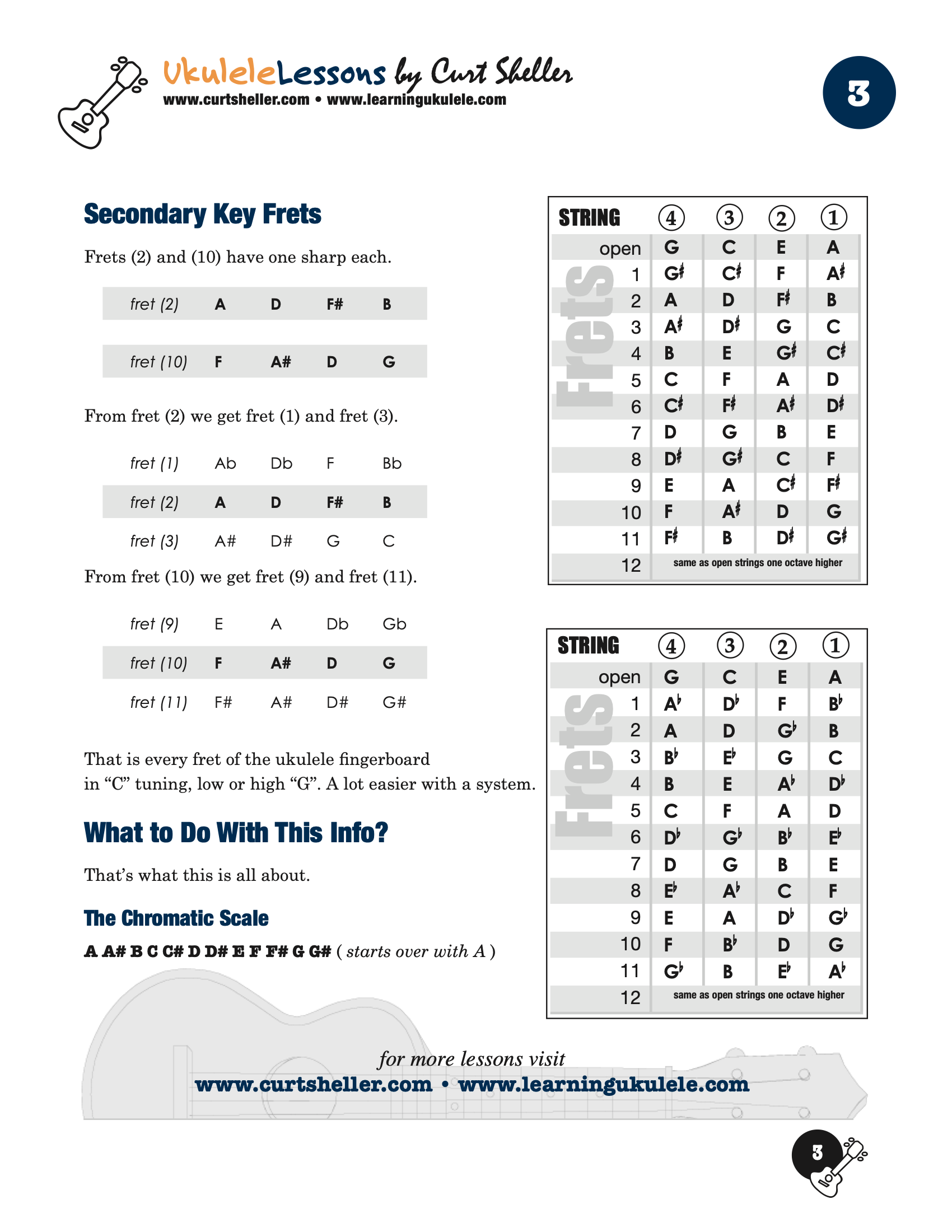 Ukulele Fingerboard Chart for G Tuning, Low or High A – D G B E